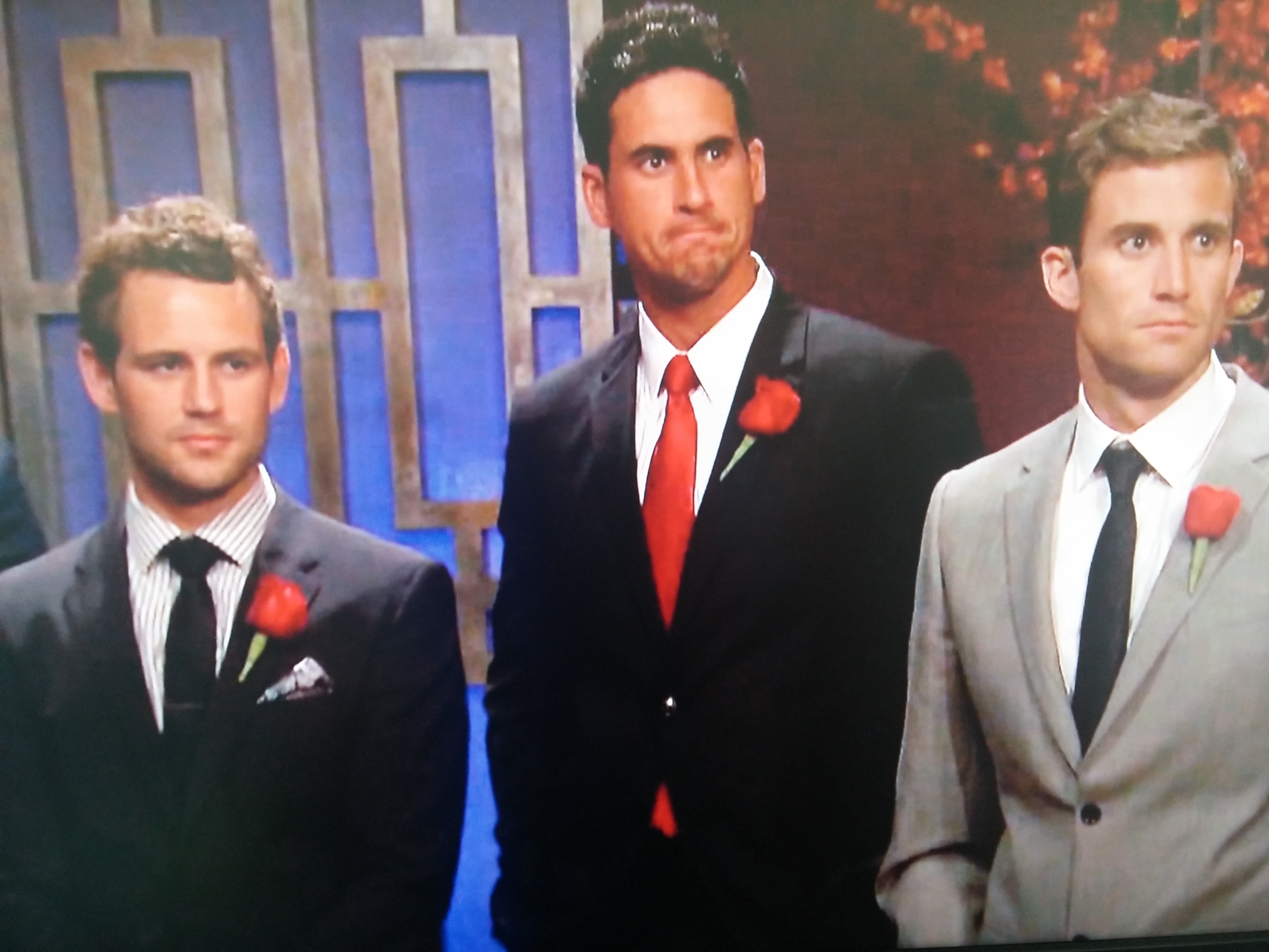 Of course, it’s not a cocktail party without a little drama. JJ gets his pants in a bunch (ha!) because Skeevy Andrew got a number from a girl on the second night they were in LA. JJ recruits Josh (because he got beat up by Josh in high school and he knows what he’s capable of) and they confront Andrew about getting the number. Andrew hides in his room until he has time to get his story straight. He got a number, didn’t do anything with it, end of lie story. Unsurprisingly, Patrick comes to his defense, because he can’t imagine life in the house without Andrew. I think he’s secretly hoping Andi picks both of them in the final episode and she takes turns being their beard during holidays. I honestly don’t know what these guys are arguing about. They have cameras on them 24 hours a day, can’t they just go to the tape? I guess a whiny bitch-fest makes for better TV. Mercifully, Chris Harrison ends their little slap fight by announcing the rose ceremony.