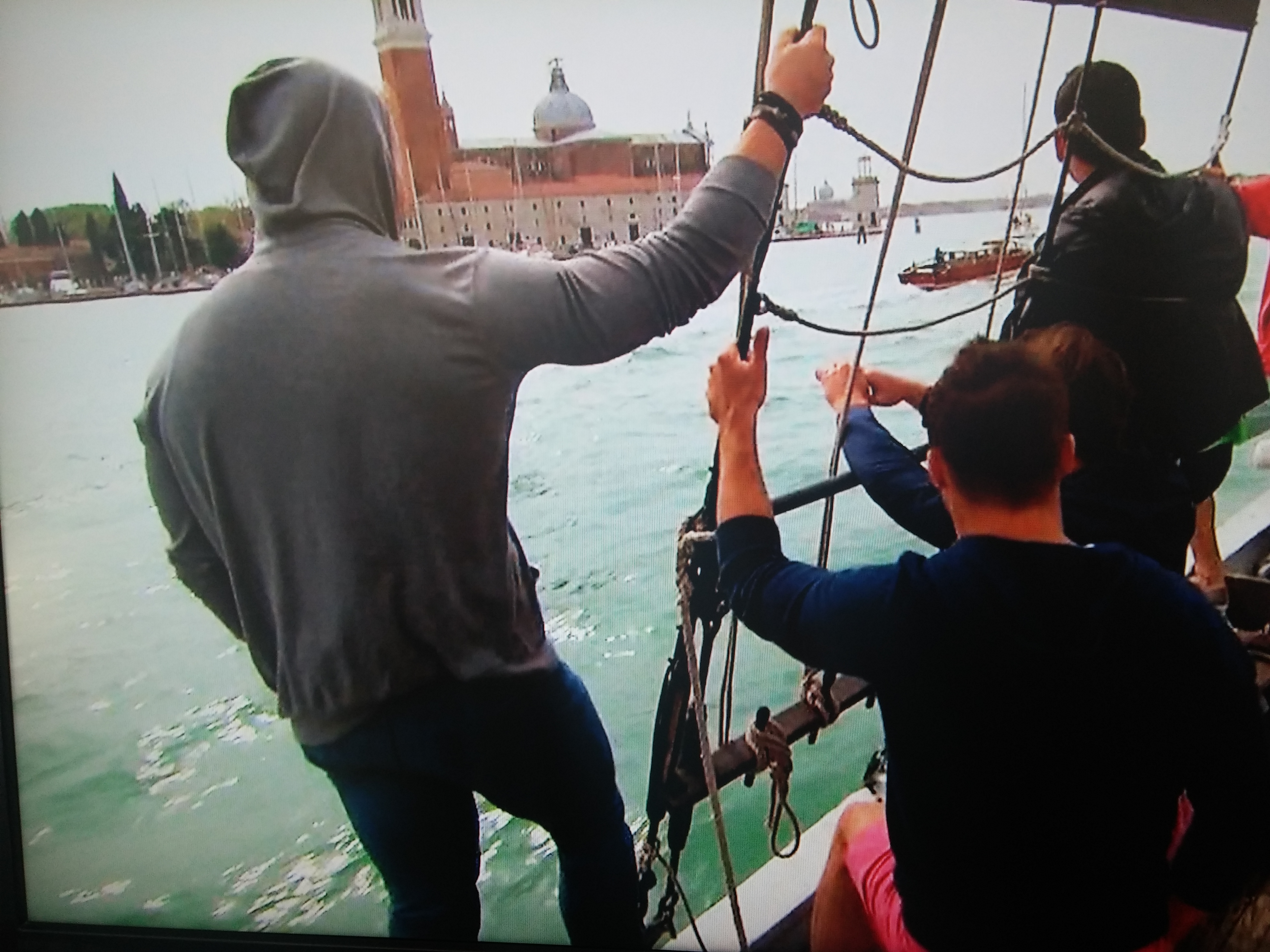Welcome to Venice! Let’s sail away to romance! And drama, and tears, and lie detector tests, and arguments…We open with the boys sailing into Venice harbor on an old ship, yelling like a bunch frat boys on spring break. I’m sure the locals love that shit. Here’s Cody contemplating jumping into the water and getting the whole thing over with, because it’s week 7 and he’s the only one left that hasn’t had a one-on-one date or made out with Andi yet.