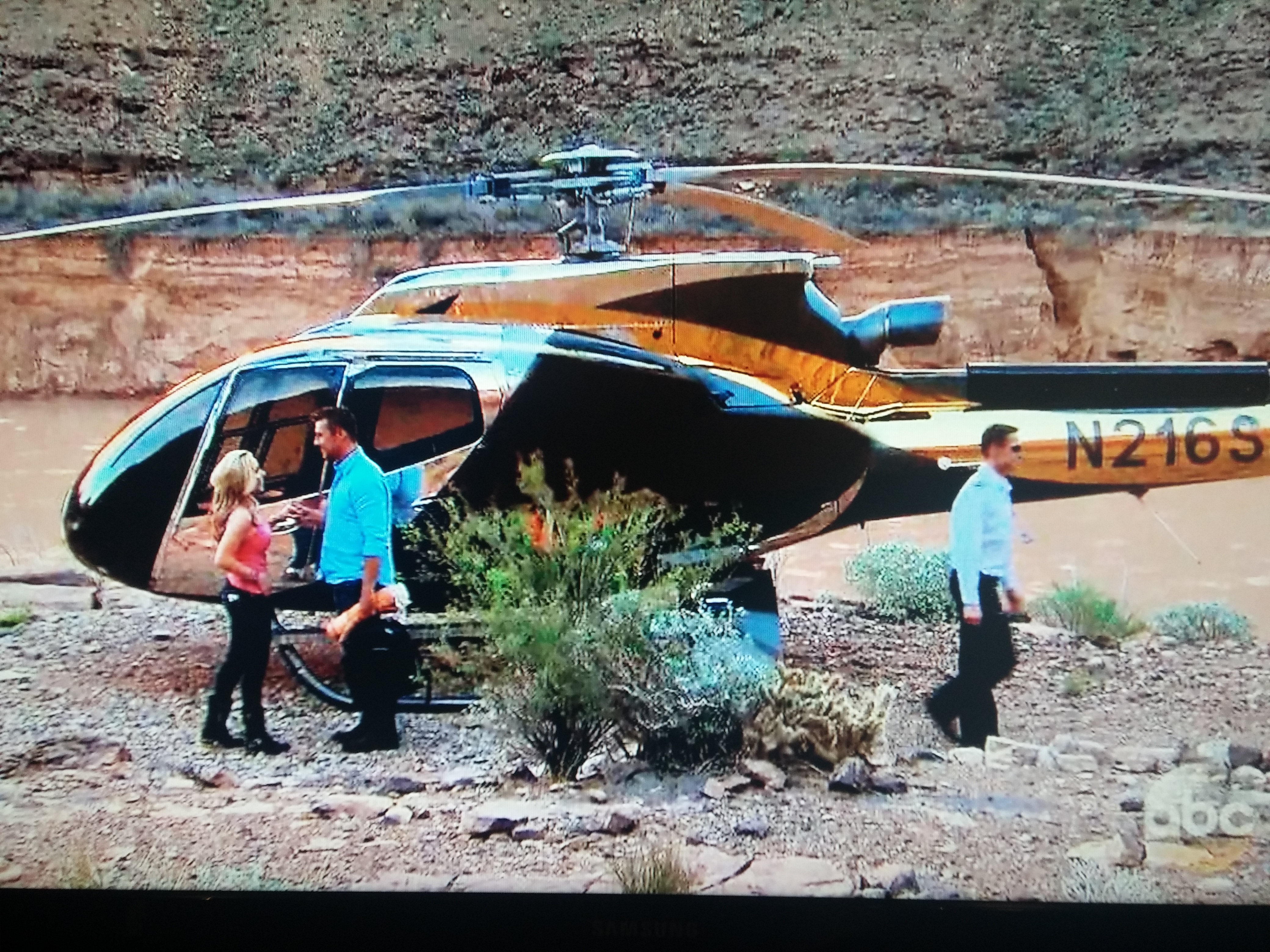 Chris picks up Megan, and after 5 minutes of explaining to her again why he’s there, they take a private jet to Las Vegas, then a helicopter tour of the Grand Canyon. This is the just first one-on-one date, btw. My man negotiated the hell out of this season. They’re having a great time, because honestly, you could have a good time with Kim Jong Un on this date. They land by a river and the pilot immediately gets out and practically runs from the helicopter.