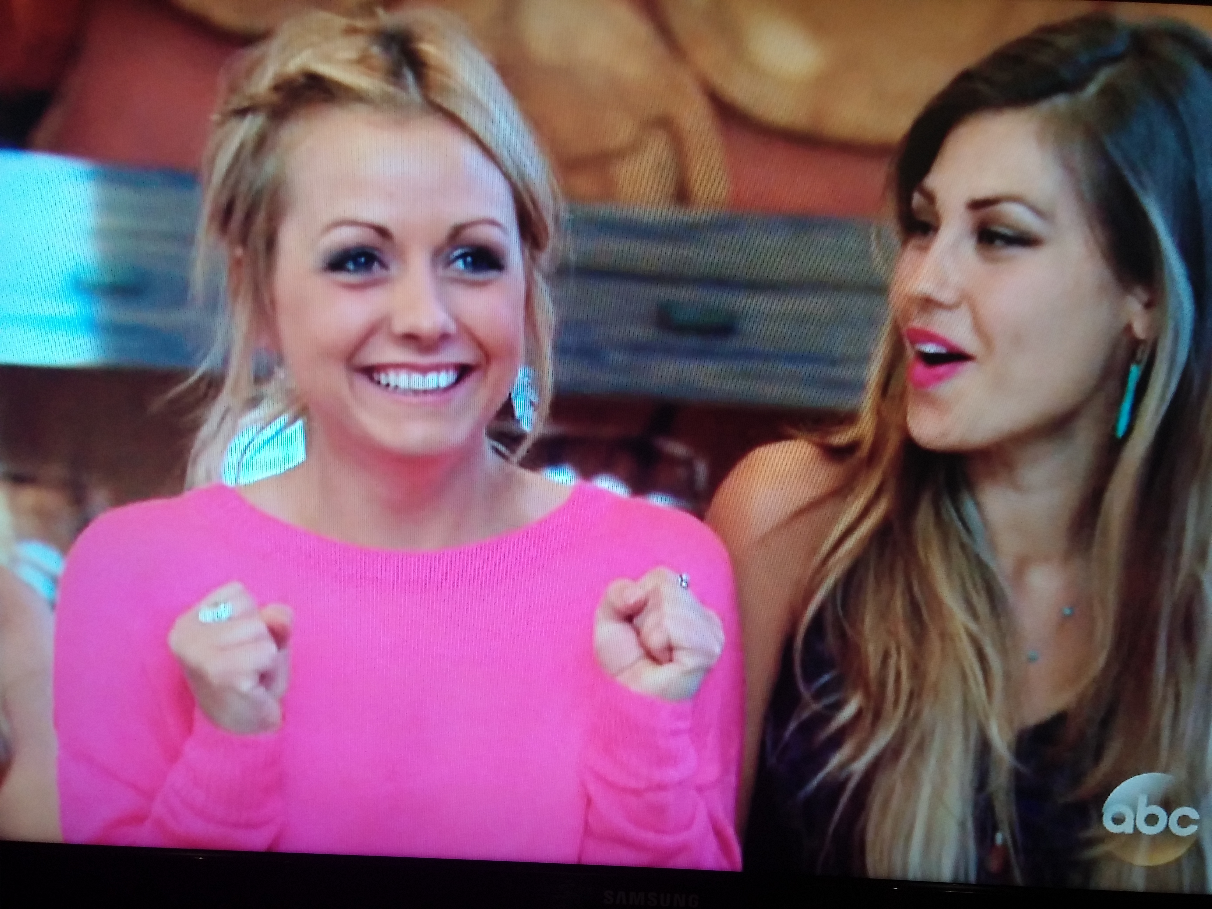Britt puts her arm around Kelsey, reassuringly telling her, “Your pumps still look great.” Kelsey smiles, “I know, right?” and all is well in her world again. Deep. Chris Harrison announces that Farmer Chris is afraid of words, Roxanne, so they’re skipping the cocktail party and going straight into the rose ceremony. And, because it’s a day ending in ‘Y’, Ashley has to have another breakdown: