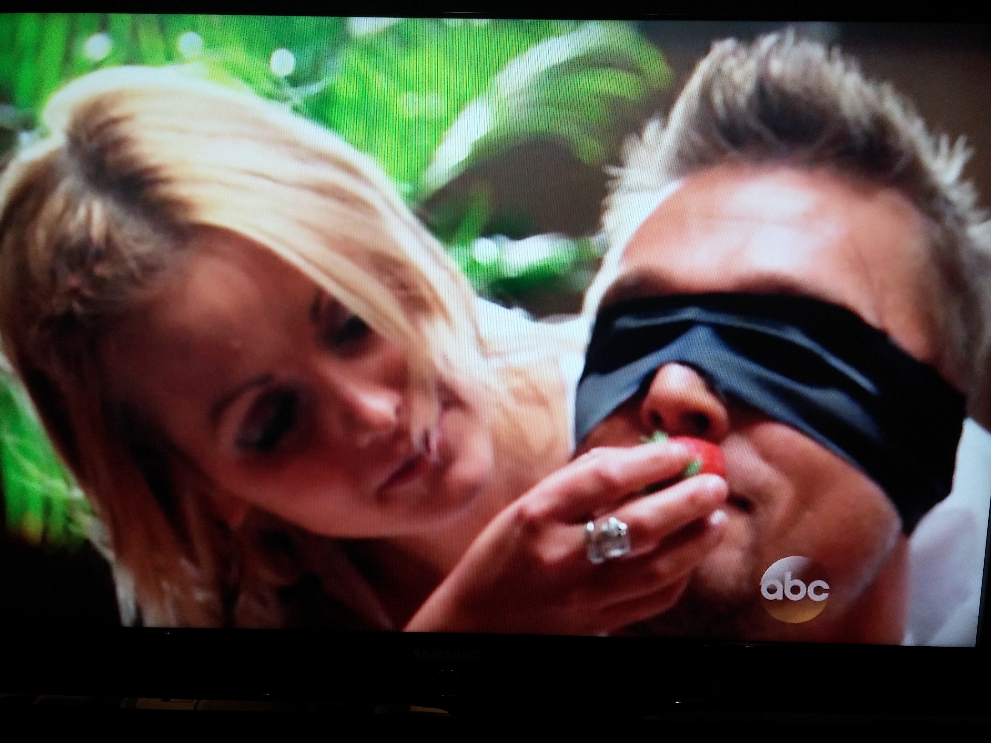 It’s all pretty weird to me – and I live in Marin. I watched Lovely Better Half give birth to our child. Suffice to say, there aren’t a lot of secrets between us, and I’d be uncomfortable on this date. I have no idea how Chris and Carly are dealing with it. Burning Man Girl tries to get them to take their clothes off, you know, so they can be more intimate with each other. And the camera crew. And everyone watching at home. However, Chris mercifully puts a stop to the madness, and they settle for sitting in an embrace and breathing into each others’ mouths. Whatever. Yet, scoff as I might, this must be the key to unlocking Carly’s Inner Goddess, because this girl is lighting up like a Carnival Cruise on the Fourth of July.