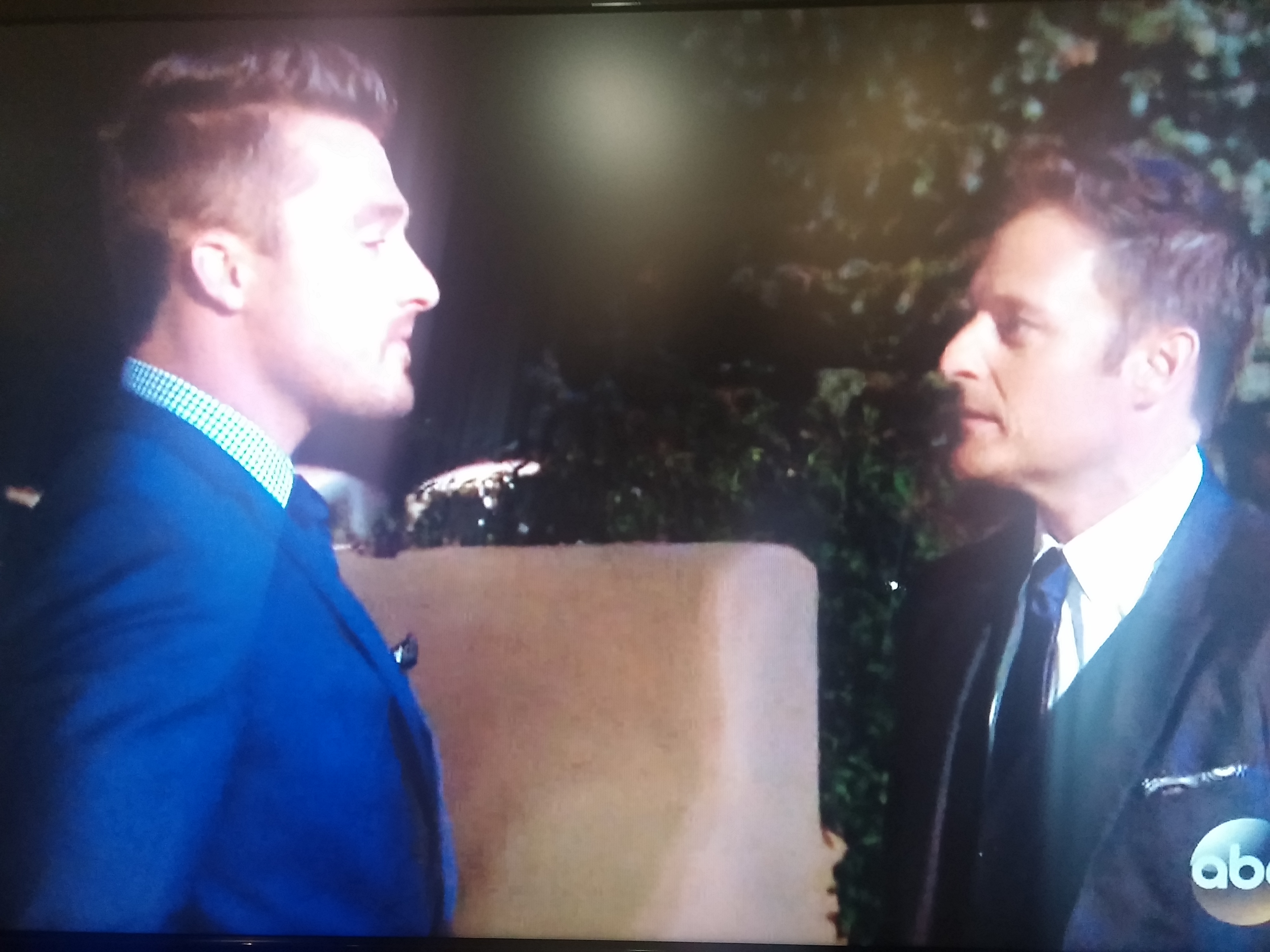 Not exactly eye-opening, Samantha. Everyone is on edge for tonight, except for Kelsey, who’s feeling super-extra-confident because she unloaded her tragic story on Chris, and she knows there’s no way he can send her home now. Chris shows up, and let’s be honest, the man does not have a future in public speaking. He stumbles around a bit, and then has to leave the room. Chris Harrison finally makes an appearance tonight to give our man a pep talk.