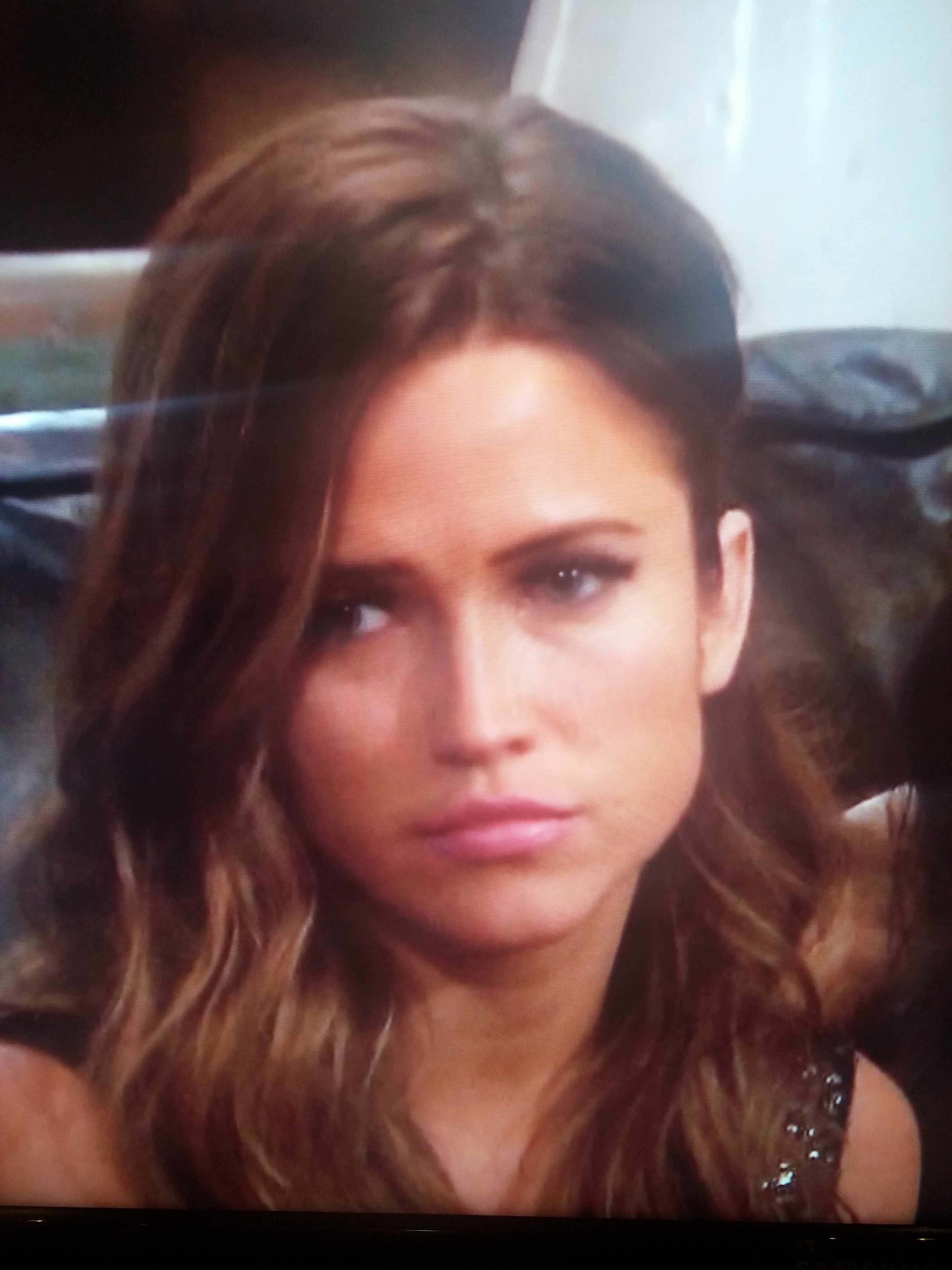 The girls take turns talking to Chris, and they run the gamut between bitching about Jordan to (pretend) understanding why Jordan is there. Except for Samantha, who still hasn’t said a word the entire season. Is she an actual, real person? Or is she a wax figure and the girls have to take turns carrying her from set to set? And why is she wearing Carly’s animal pelt from the one-on-one date?