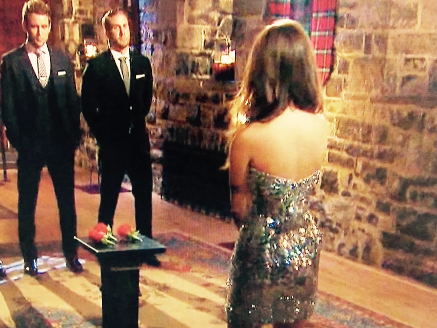 Amazing. I wasn’t sure they still had these on this show. Chris Harrison makes an appearance, and he’s so pissed at still being in Ireland, that he cancels the cocktail party out of spite. The boys suit-up, and heeeere’s Kaitlyn!