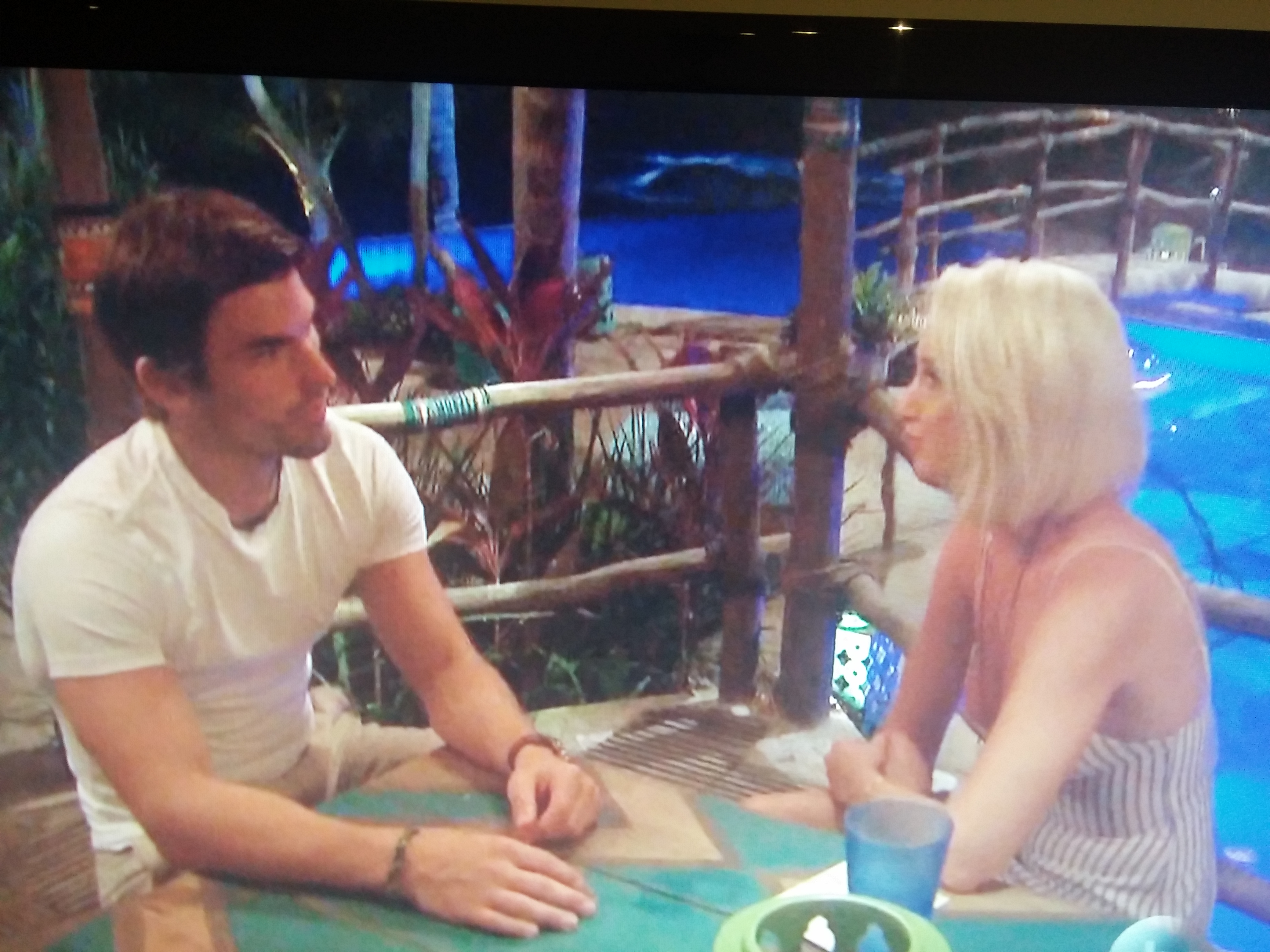 Juelia gets stung by a jellyfish! And now we get to witness the first golden shower in bachelor history (as far as we know…), because according to Juelia, peeing on it is the only thing that works. Well, besides a mixture of vinegar and sea water, and then some hydrocortisone cream, but hey, if The Producers couldn’t be bothered to provide sunscreen, you can forget such grandiose gestures as a basic first aid kit, so it’s off to the bathroom! At least Tenley is concerned enough to ask “does it feel good?” Then, Lovely Better Half says “Good thing she didn’t get stung in the face” and I nearly spit my beer all over the living room.