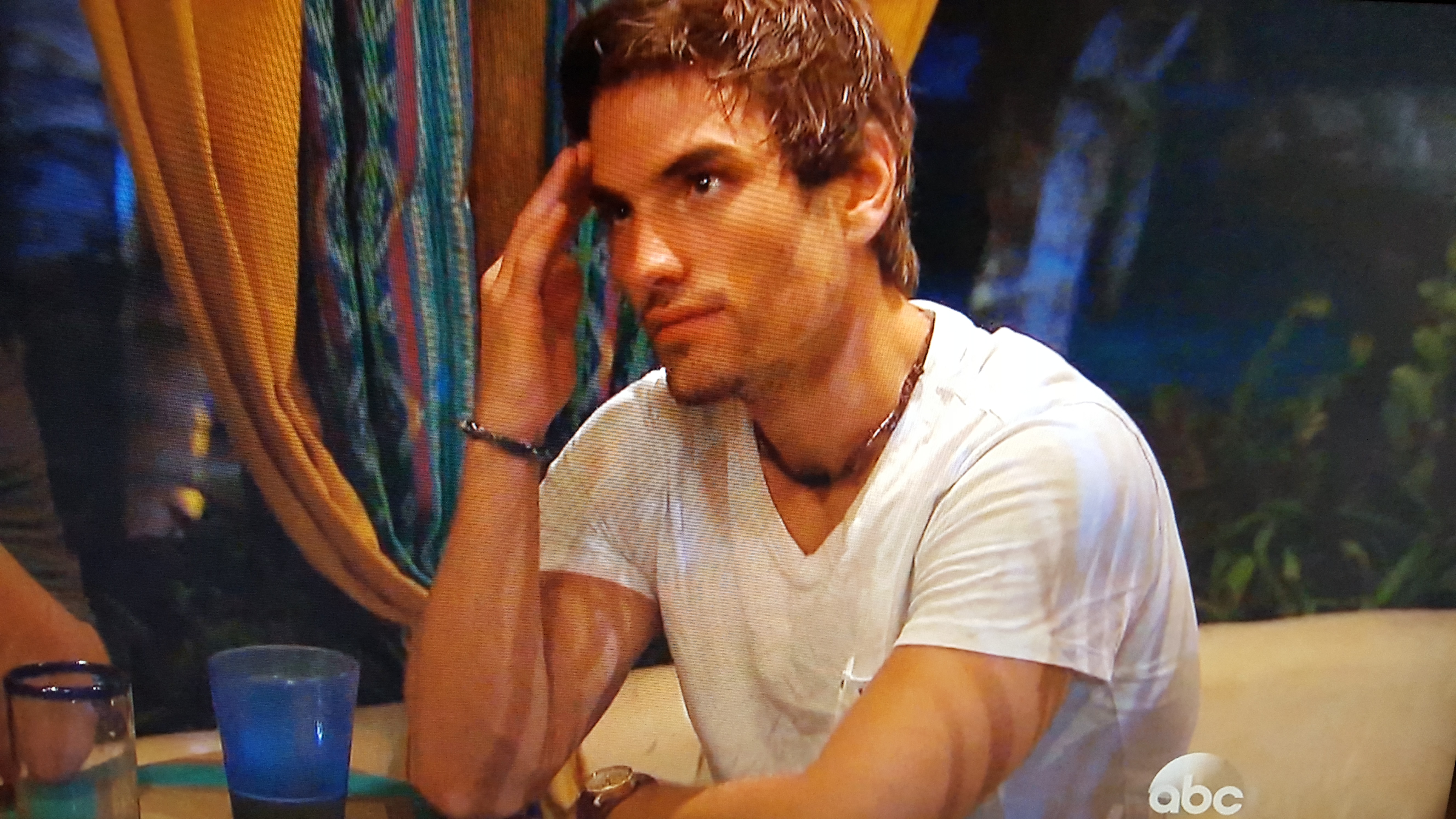 After getting card-blocked by Ashley, Jaclyn still needs to find a date, so she asks Puffy Faced Justin, who says ‘yes’. And he stands by his answer for about 30 seconds until Cassandra from Juan Pablo’s Season jiggles into Paradise. Of course Cassandra asks Justin, and of course Justin says yes, because he’s not blind. How is it possible that this guy has two dates in one day? He’s not that good-looking. I guess it pays to be the last single man standing.