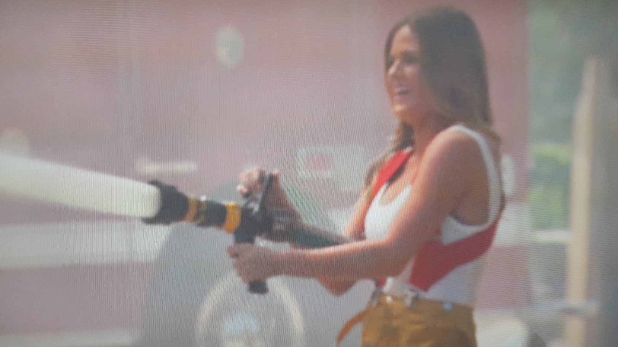 I’d just like to point out that Alex the Marine who supposedly “ripped the door off a burning car to save someone’s life” didn’t move an inch, and neither did Grant the Firefighter. Aren’t The Interns supposed to fact-check these questionnaires? And then JoJo grabs a fire hose and is one gust of wind away from turning this thing into a wet t-shirt contest.