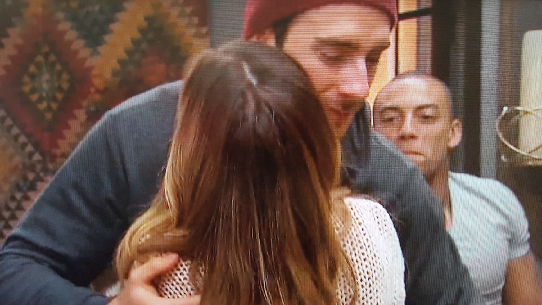 Nighttime. James T writes a note to JoJo that is so sweet and touching that she cries, and I’m thinking that this guy is suddenly in the running. And then she kisses him, and it’s so devoid of chemistry that he’s out again. JoJo even tries kissing him a second time, because the note was so good that she wants it to work out, but nope; no chemistry there. In stark contrast, JoJo sits down with Chad, and her internal alarm is going off like an air raid siren because Chad is just like every dick ex-boyfriend that her brothers hated. She’s on her guard, but then Chad opens his heart and tells her that his mom passed away 6 months ago, and now he’s here for at least another 3 weeks and JoJo’s in trouble: