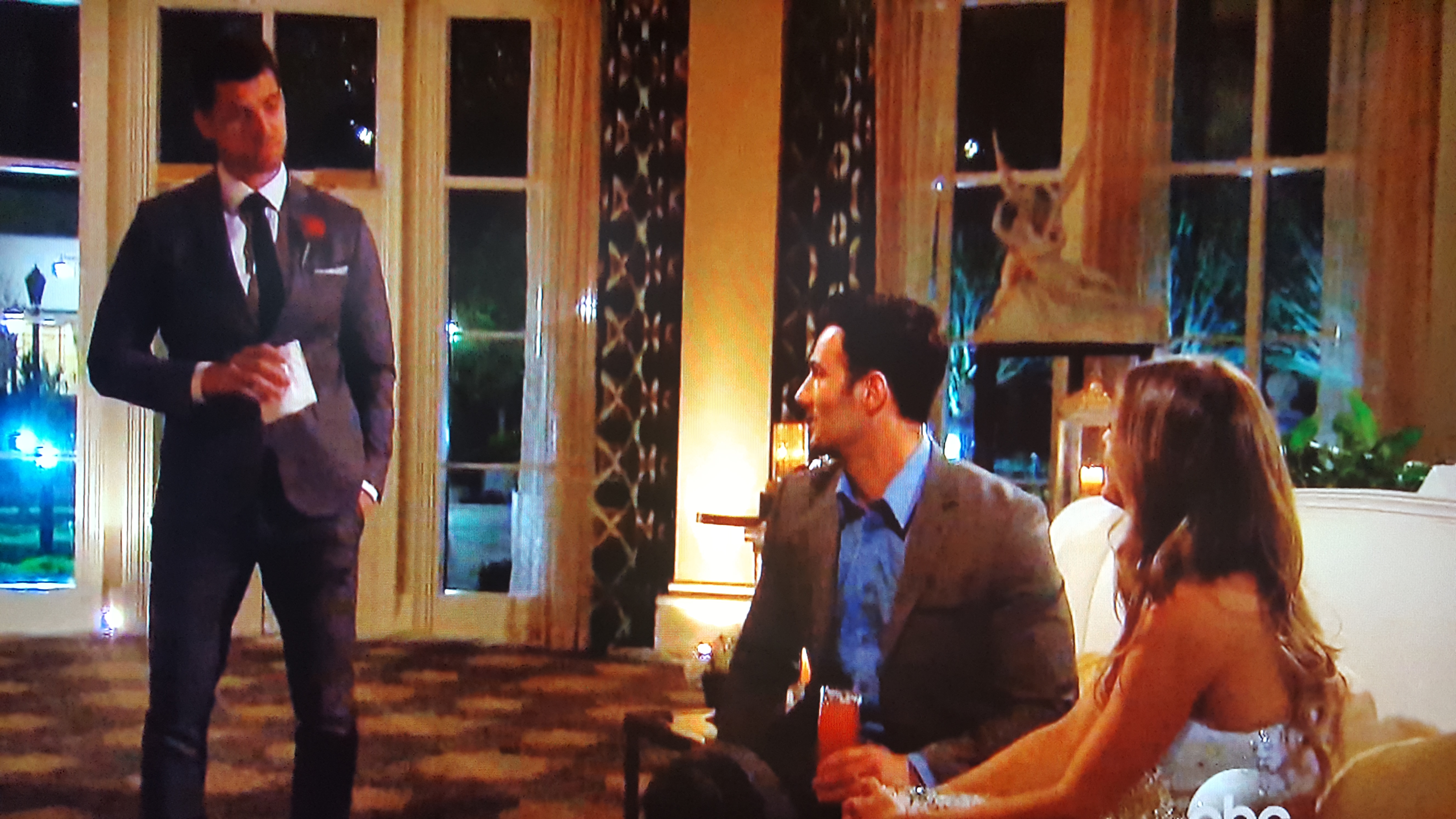 Luckily for ABC, Chris Harrison steals JoJo away for the Rose Ceremony before she can tell everyone to pack their bags because she’s running away to the Bahamas with Jordan.