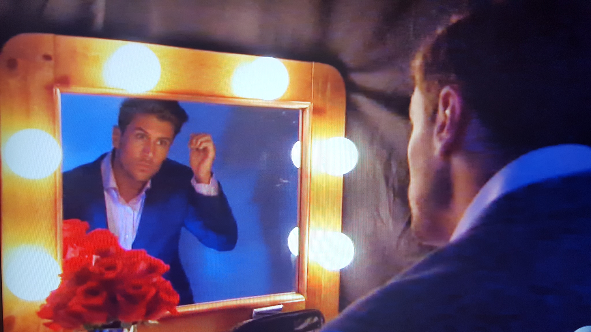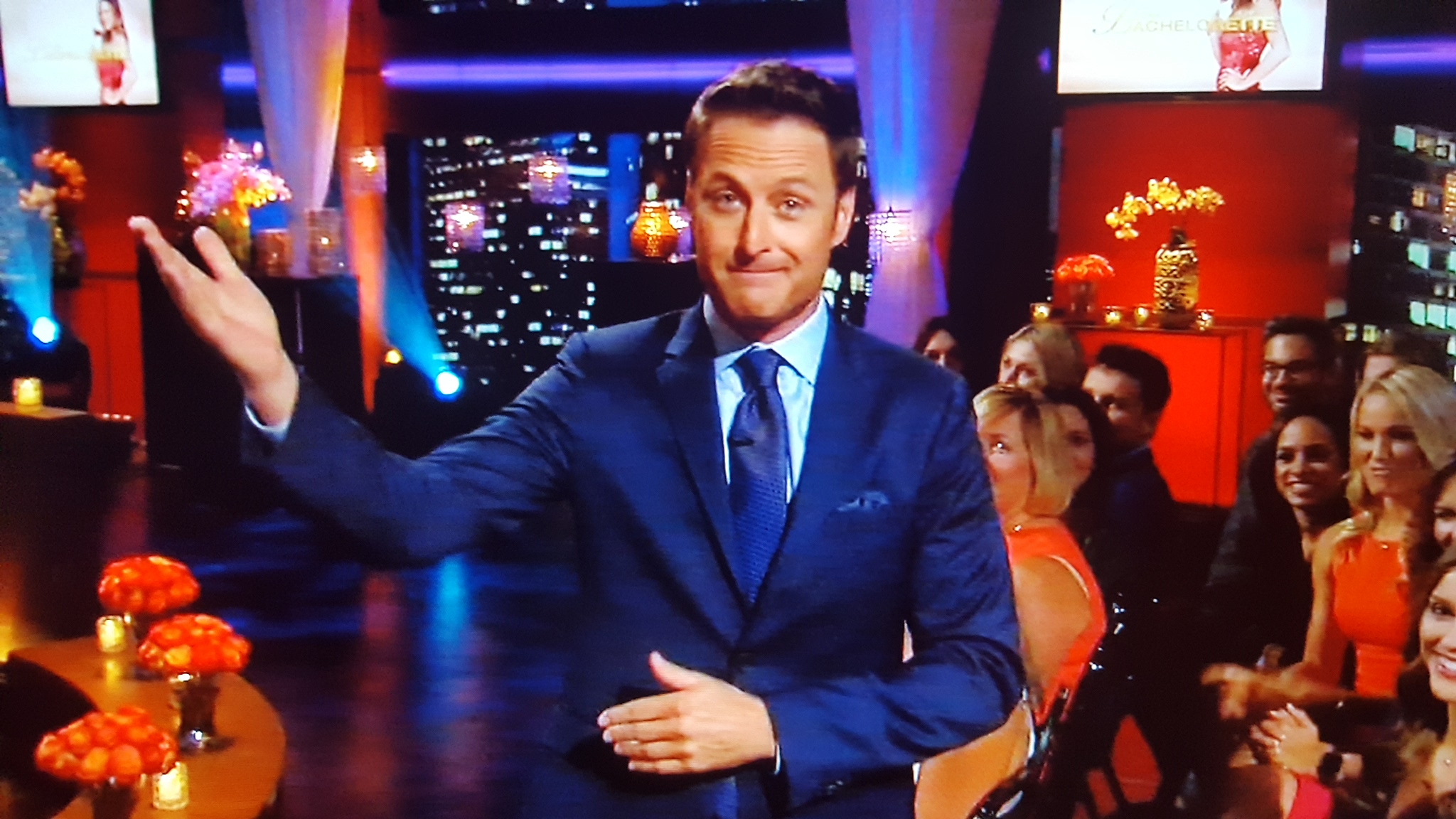 More like a raft date, maybe. And if this episode is so emotional, why am I giggling during JoJo’s panic attack? (LBH: “Because you’re an ass.” Oh yeah, that’s why.) Back to Chris Harrison, who welcomes us to beautiful Los Angeles (Burbank), in a sound studio filled with jewel tones and business attire. The audience clearly read the memo.