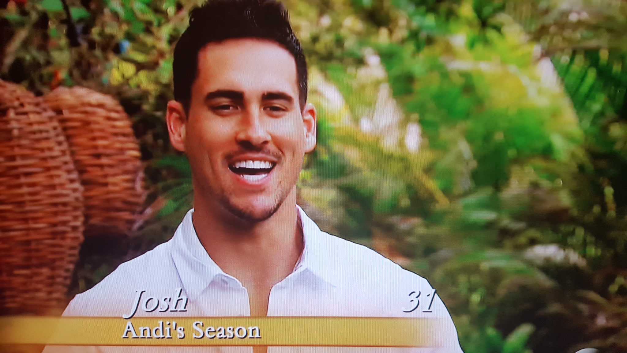 Hi, I’m Josh, I was on Andi’s season, and she ruined my chances of being The Bachelor when she shocked everyone – me included – by choosing me over Nick. What was that? NICK’S HERE?! [laughs hysterically] Oh my god! This is gonna be great! Which girl is he dating?