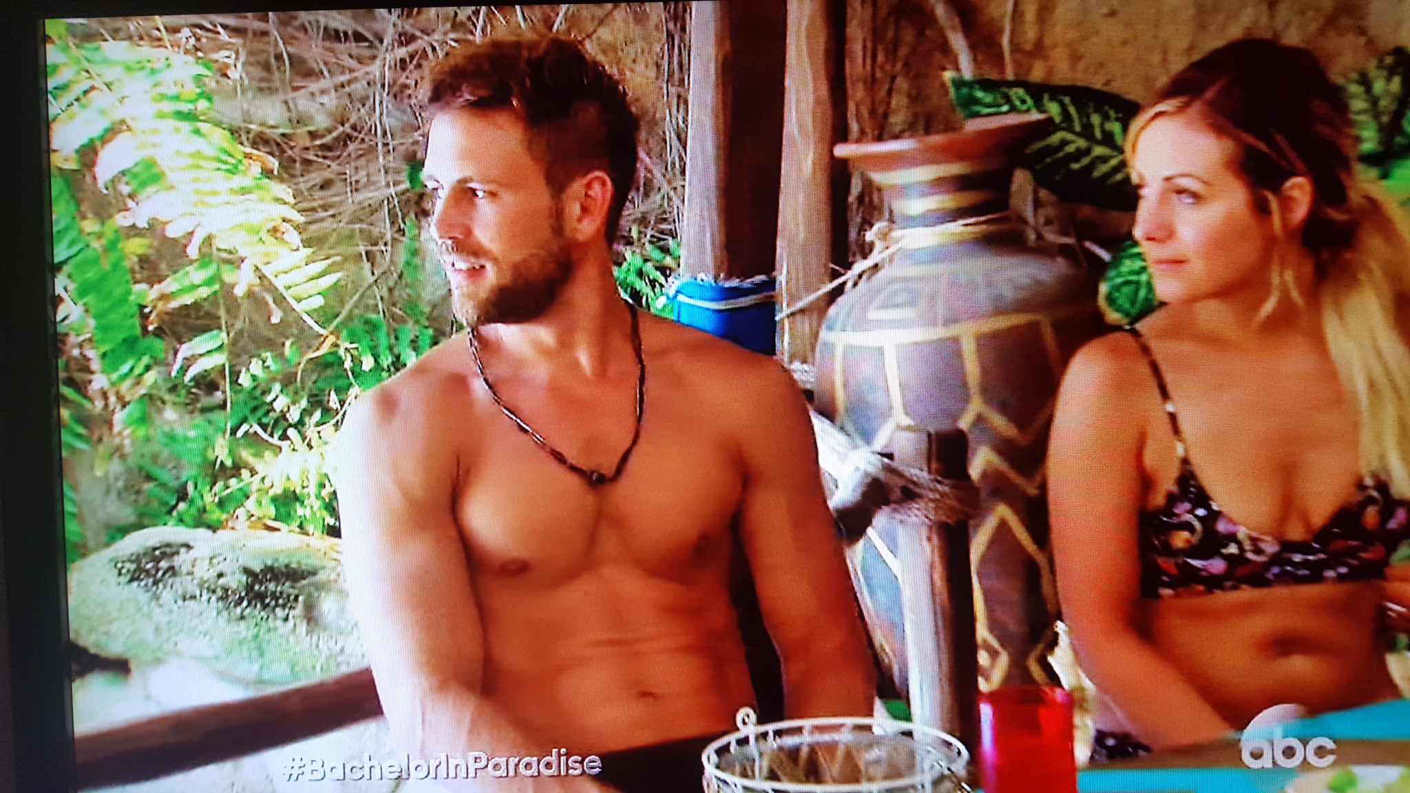 Evan is stalking Carly around the palapa, mentally sizing her up for the cage he built in his soundproof basement back at home. Carly’s doing her best to give him a chance, but Evan’s not good at taking charge of the situation, and she really wants to see his manly-side. Like, any sign of masculinity at all. I think scratching his nuts would suffice at this point. Finally, Carly gets sick of waiting, and plants one on Evan. So, how was it?