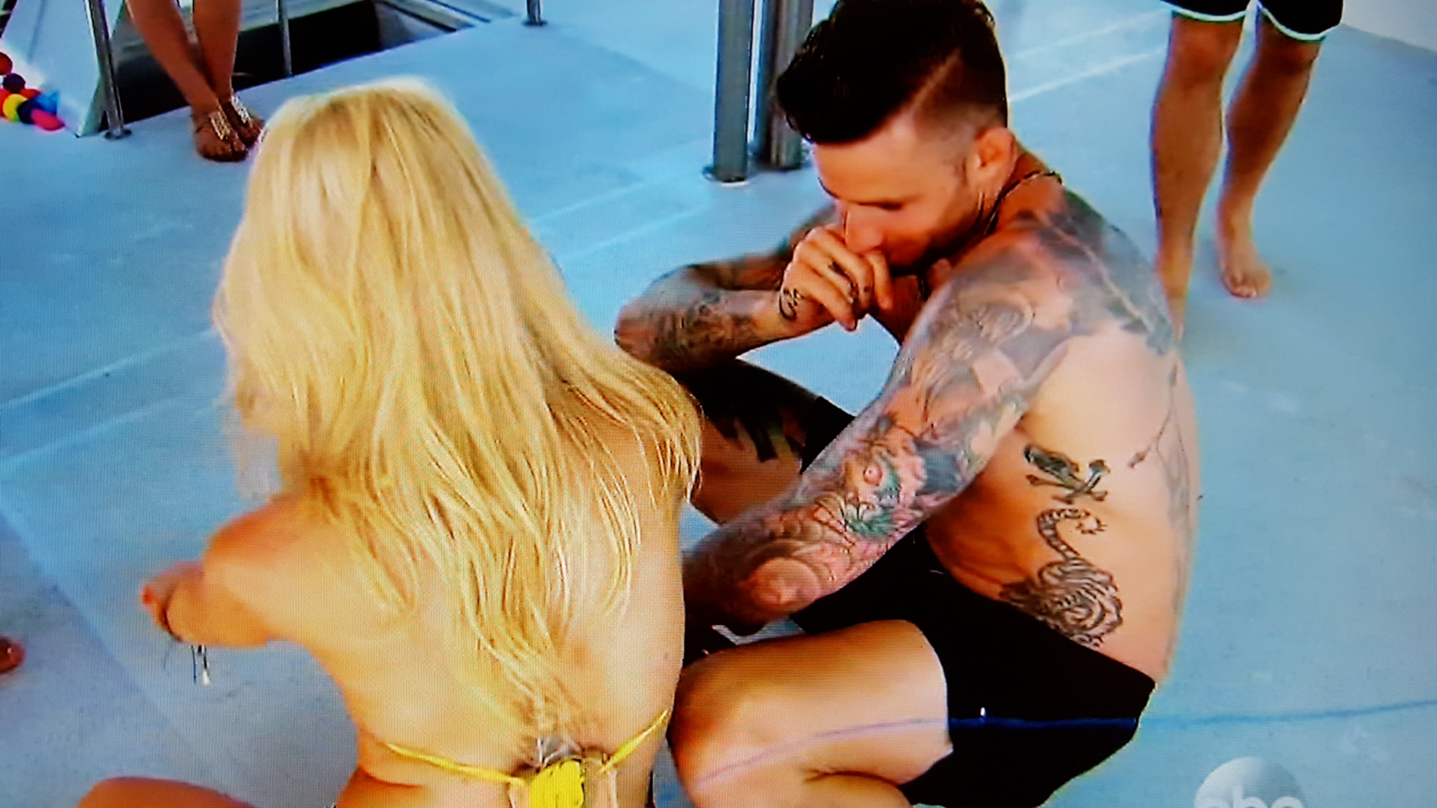 Turning down an eye-level pelvic thrust? That’s not very sex panther, Caila. Eventually the foursome returns to shore, and Caila rescues Jared from Ashley, who has used the vacuum of Caila’s absence to reestablish a beachhead in Jared’s heart.